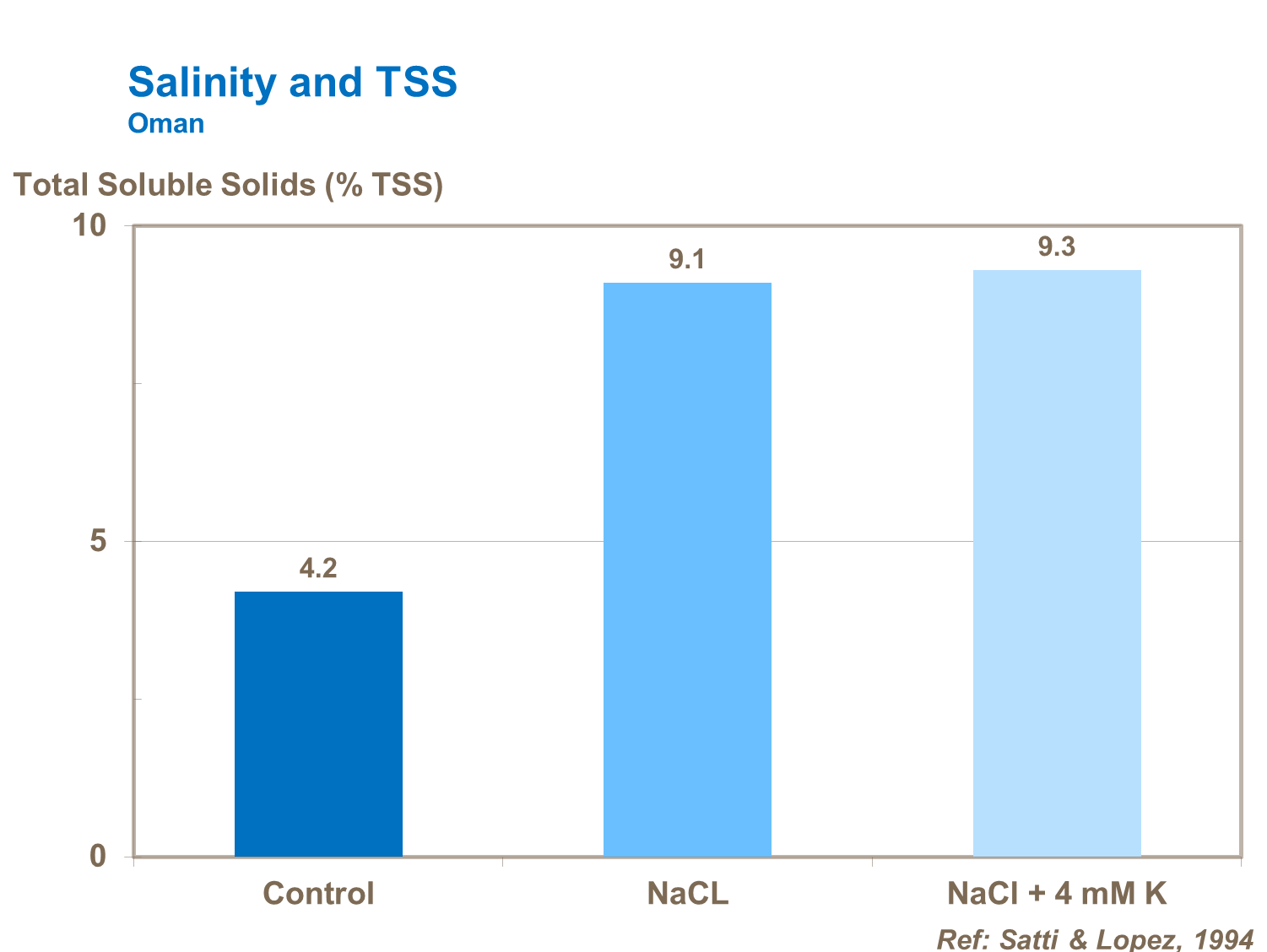 EC level, type of salinity, and the balance between the nutrients in solution will all influence the quality of the harvested fruit.